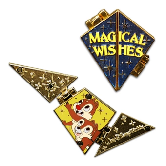 This limited edition Annual Passholder exclusive pin connects with the other quarterly limited release pin collection to create a full picture. This hinged pin features the phrase “Magical Wishes” and opens to reveal Chip ‘N Dale