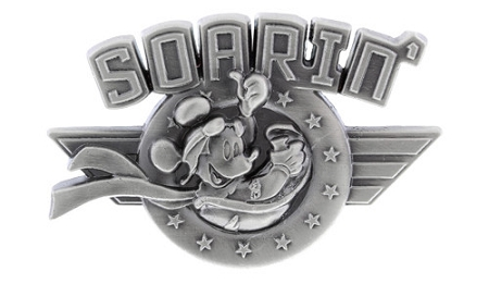 Soarin’ open edition pin features Mickey Mouse. This pin has a 3D sculpted metal embellishment.